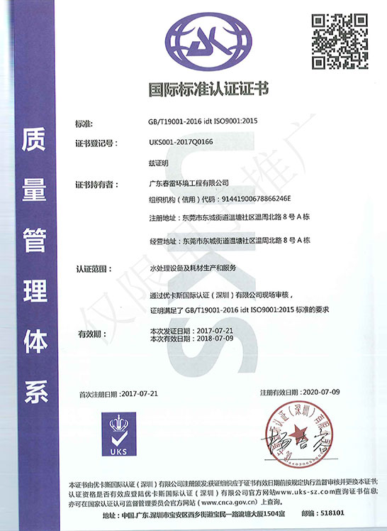 环境管理体系认证证书-中文